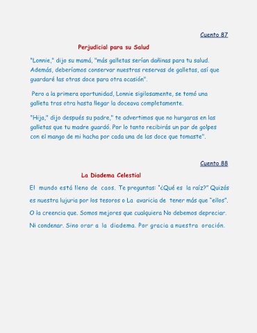 "Lonnie," dijo su mamá, "más galletas serían dañinas para tu salud.