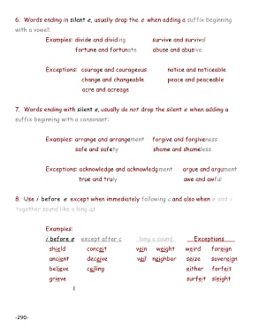 7. Words ending with silent e, usually do not drop the silent e when adding a