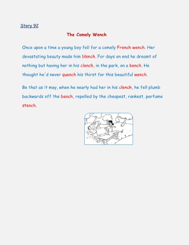 backwards off the bench, repelled by the cheapest, rankest, perfume