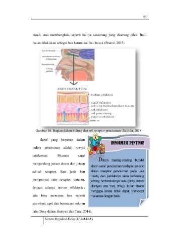 Gambar 16. Bagian dalam hidung dan sel reseptor penciuman (Safrida, 2018).