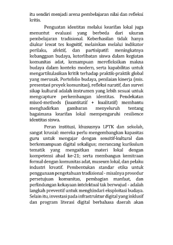 itu sendiri menjadi arena pembelajaran nilai dan refleksi