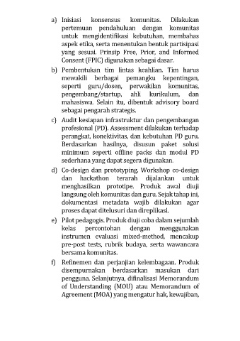 e) Pilot pedagogis. Produk diuji coba dalam sejumlah
