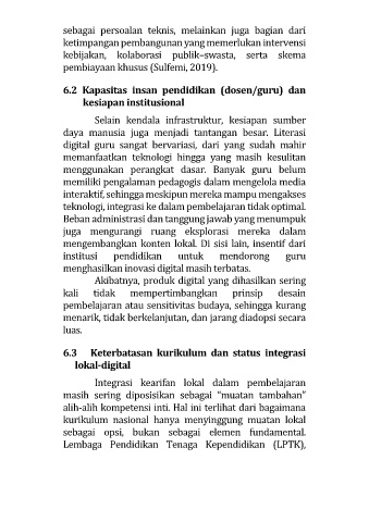 teknologi, integrasi ke dalam pembelajaran tidak optimal.