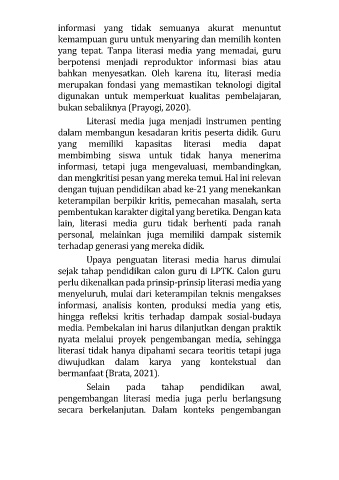 yang tepat. Tanpa literasi media yang memadai, guru