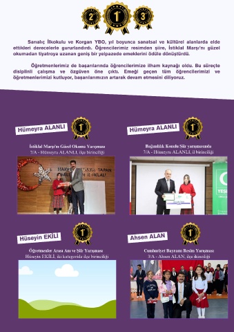 ettikleri derecelerle gururlandırdı. Öğrencilerimiz resimden şiire, İstiklal Marşı’nı güzel