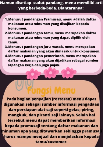1. Menurut pandangan Pramusaji, menu adalah daftar