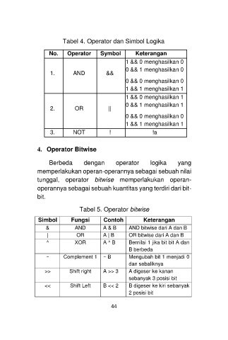 ^ XOR A ^ B Bernilai 1 jika bit bit A dan