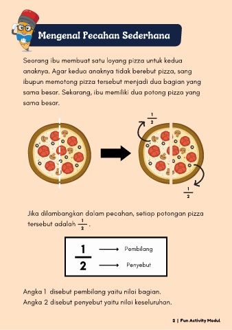 sama besar. Sekarang, ibu memiliki dua potong pizza yang