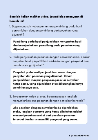 2. Pada penjumlahan pecahan dengan penyebut sama, apakah