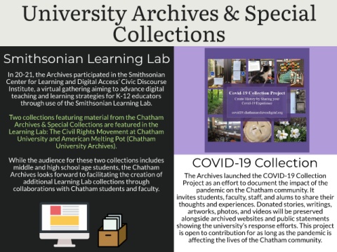 collaborations with Chatham students and faculty. pandemic on the Chatham community. It