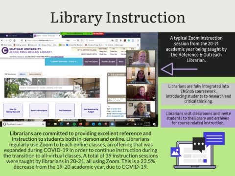 were taught by librarians in 20-21, all using Zoom. This is a 23.5%