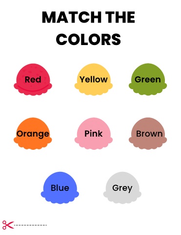 MATCH THE COLORS Red Yellow Green Orange Pink Brown Blue Grey