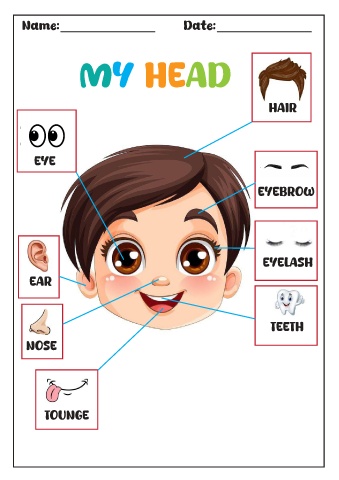 Name: Date: MY HEAD HAIR EYE EYEBROW EYELASH EAR TEETH NOSE TOUNGE