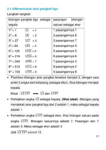 mendekati akar pangkat tiga dari 2 adalah 1, maka sebagai kepala