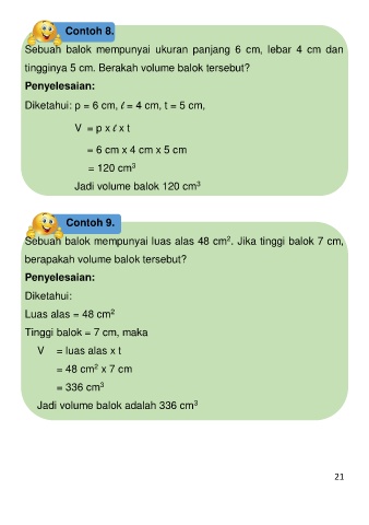 Sebuah balok mempunyai luas alas 48 cm . Jika tinggi balok 7 cm,