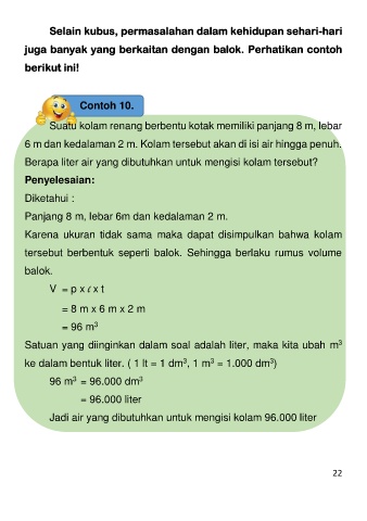 6 m dan kedalaman 2 m. Kolam tersebut akan di isi air hingga penuh.