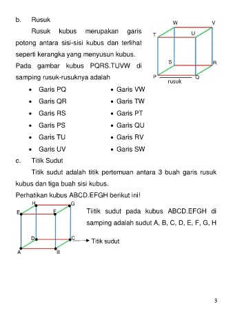 Titik sudut adalah titik pertemuan antara 3 buah garis rusuk