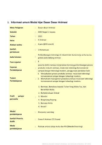 1. Informasi umum Modul Ajar Dasar Dasar Animasi