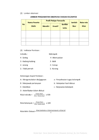 LEMBAR PENGAMATAN OBSERVASI DISKUSI KELOMPOK