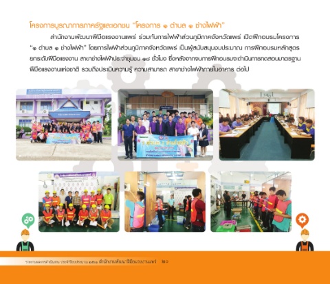 “๑ ตําบล ๑ ชางไฟฟา” โดยการไฟฟาสวนภูมิภาคจังหวัดแพร เปนผูสนับสนุนงบประมาณ การฝกอบรมหลักสูตร