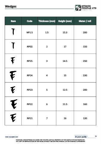 Item Code Thickness (mm) Height (mm) Meter / roll
