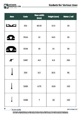 Item                Code                                Height (mm)            Meter / roll