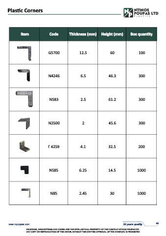 Item Code Thickness (mm) Height (mm) Box quan ty