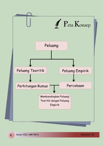 Peta Konsep Peluang Peluang Teoritik Peluang Empirik Perhitungan Rumus Percobaan Membandingkan Peluang Teoritik dengan Peluang Empirik 2 Kelas VIII SMP/MTs Semester II