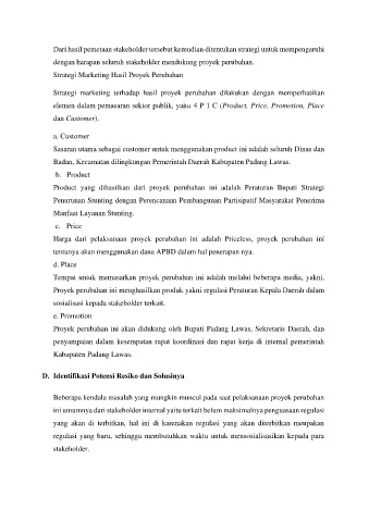 Strategi marketing terhadap hasil proyek perubahan dilakukan dengan memperhatikan