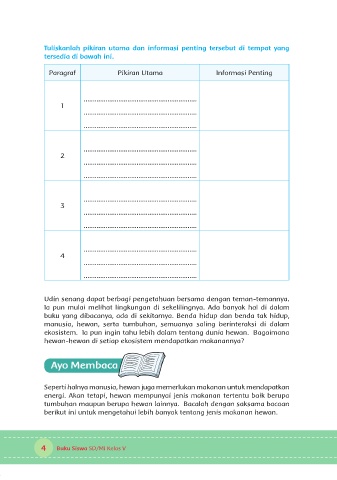 tumbuhan maupun berupa hewan lainnya. Bacalah dengan saksama bacaan