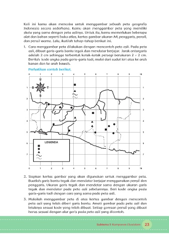 1. Cara menggambar peta dilakukan dengan mencontoh peta asli. Pada peta