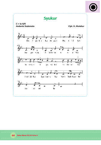 Syukur C = la 4/4 Andante Sustenuto Cipt. H. Mutahar 44 Buku Siswa SD/MI Kelas V