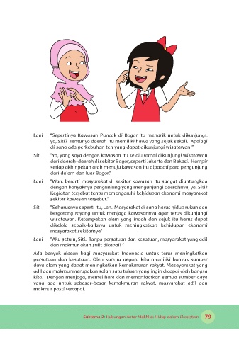 Lani : ”Aku setuju, Siti. Tanpa persatuan dan kesatuan, masyarakat yang adil