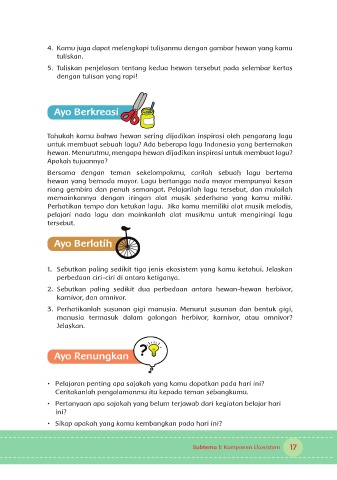 hewan. Menurutmu, mengapa hewan dijadikan inspirasi untuk membuat lagu?