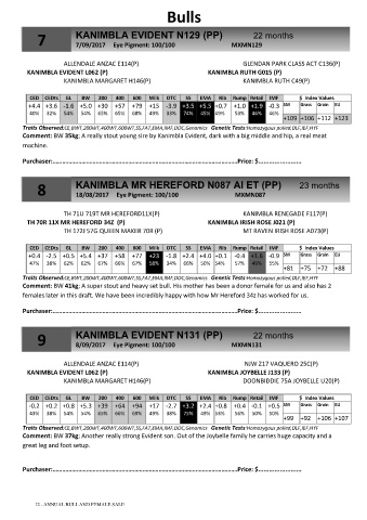 Comment: BW 35kg; A really stout young sire by Kanimbla Evident, dark with a big middle and hip, a real meat