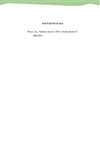 DAFTAR PUSTAKA Pitoyo Ari., Nurdina Anis R, (2013). Biologi Kelas X SMA/MA.