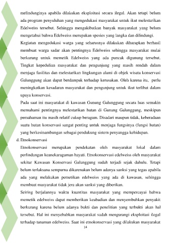 terhadap tanaman edelweiss. Saat ini etnokonservasi yang dilakukan masyarakat
