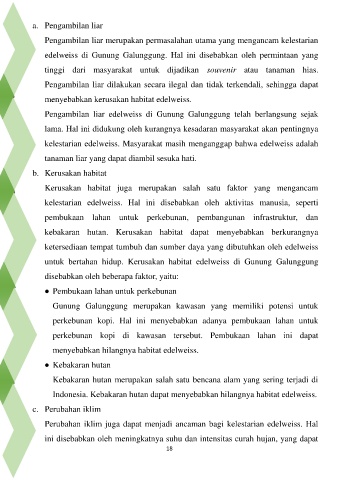 kelestarian edelweiss. Hal ini disebabkan oleh aktivitas manusia, seperti
