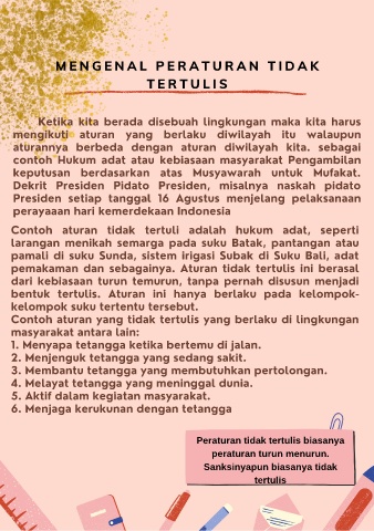 Contoh aturan yang tidak tertulis yang berlaku di lingkungan