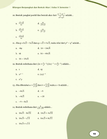 10. Bentuk pangkat positif dan bentuk akar dari 1 1 adalah…