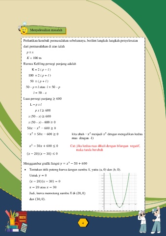 Menggambar grafik fungsi = − 50 + 600