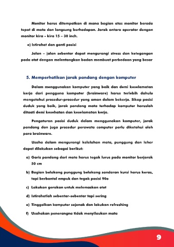 a) Garis pandang dari mata harus tegak lurus pada monitor berjarak