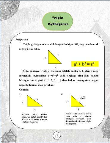 Sederhananya triple pythagoras adalah angka a, b, dan c yang