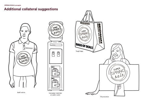 SPRING DEALS concepts Additional collateral suggestions Staff t-shirts Campaign materials on water cooler Tough bags Till promotion