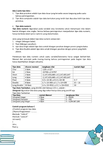 Tipe data numeric digunakan pada variabel atau konstanta untuk menyimpan nilai dalam