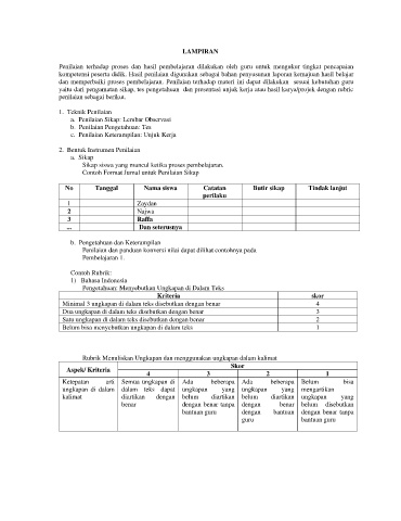 Penilaian terhadap proses dan hasil pembelajaran dilakukan oleh guru untuk mengukur tingkat pencapaian