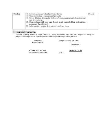Penutup 16. Siswa mapu mengemukan hasil belajar hari ini 15 menit