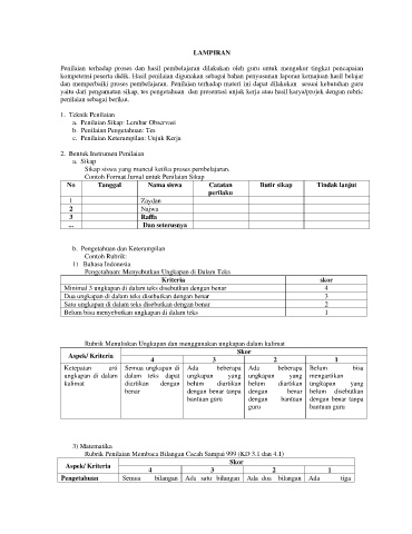 Rubrik Penilaian Membaca Bilangan Cacah Sampai 999 (KD 3.1 dan 4.1)