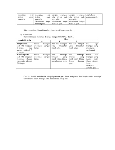 Rubrik Penilaian Membaca Bilangan Sampai 999 (KD 3.1 dan 4.1)