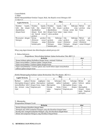 Rubrik Mempraktikkan Gerakan Tangan, Kaki, dan Kepala sesuai Hitungan (KD
